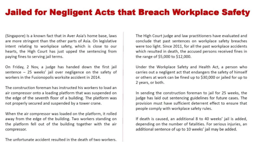 On Friday, 2 Nov, a judge has handed down the first jail sentence – 25 weeks’ jail over negligence on the safety of workers in the Fusionopolis worksite accident in 2014.